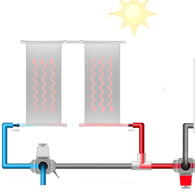 Les capteurs solaires pour piscine peuvent être raccordés de différentes manières, avec ou sans automatisation.