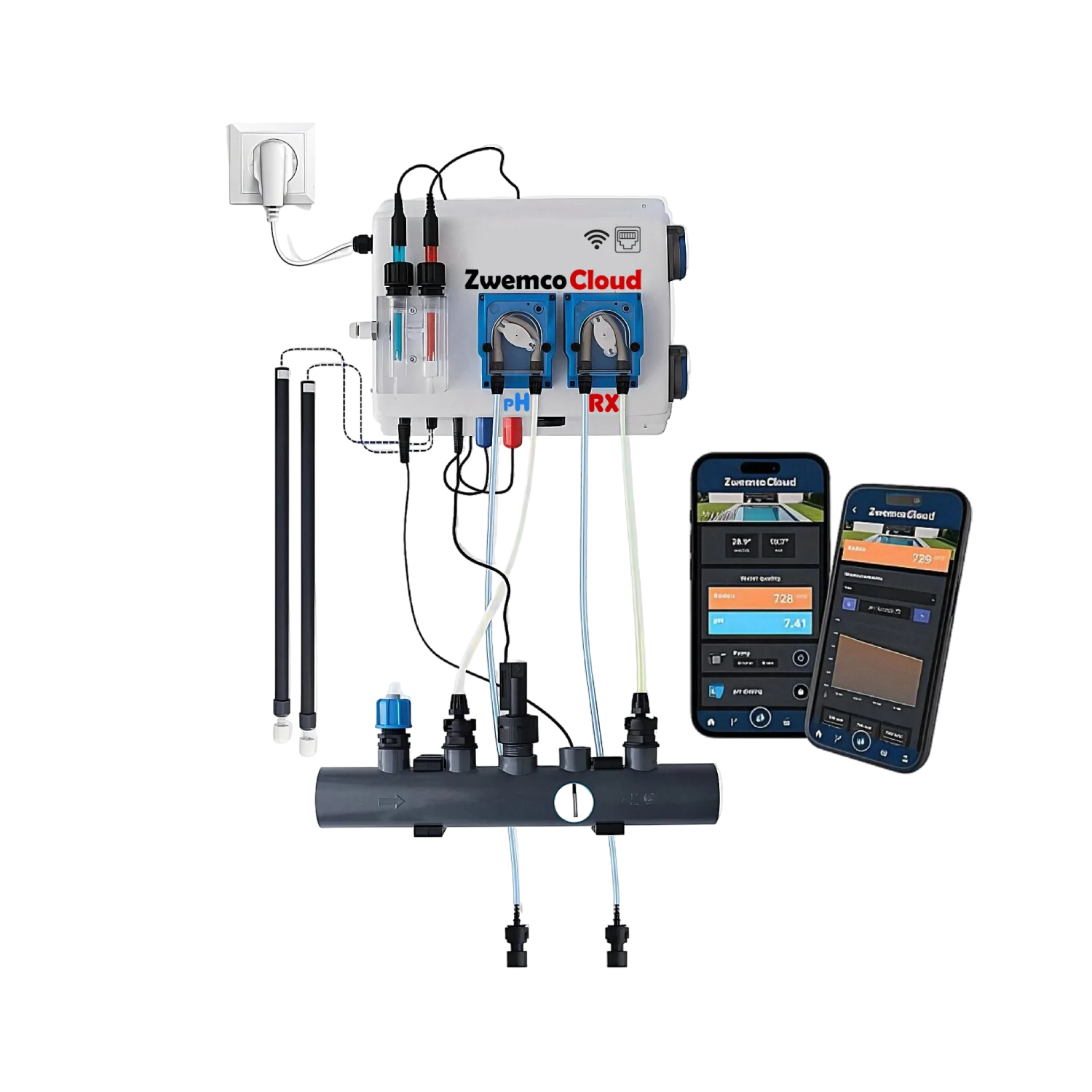 Le Pool Twin PRO ZwemcoCloud WiFi est un appareil de traitement d'eau automatique pour dosage de chlore liquide et neutralisant pH, de haute qualité à un prix incroyable.